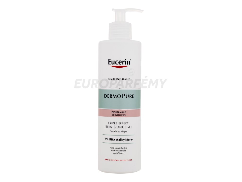 Eucerin DermoPure Triple Effect Cleansing Gel je čisticí gel, který cílí na tři klíčové problémy problematické pleti: nedokonalosti, hyperpigmentaci a nadměrný lesk. Jeho speciálně vyvinuté složení s 2% kyselinou salicylovou poskytuje efektivní řešení pro aknózní pleť, kterou zanechává čistou a svěží.