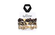 By Eloise London Leopard Luxe Set je elegantní sada tří luxusních gumiček, které přinášejí spojení praktičnosti a stylu. Tyto gumičky jsou vyrobeny z kvalitního elastického materiálu, který pevně drží účes po celý den, aniž by způsoboval tahání nebo lámání vlasů. Každá gumička je navíc ozdobena jemným zlatým přívěskem, který dodává vlasovému doplňku šmrnc elegance a sofistikovanosti.