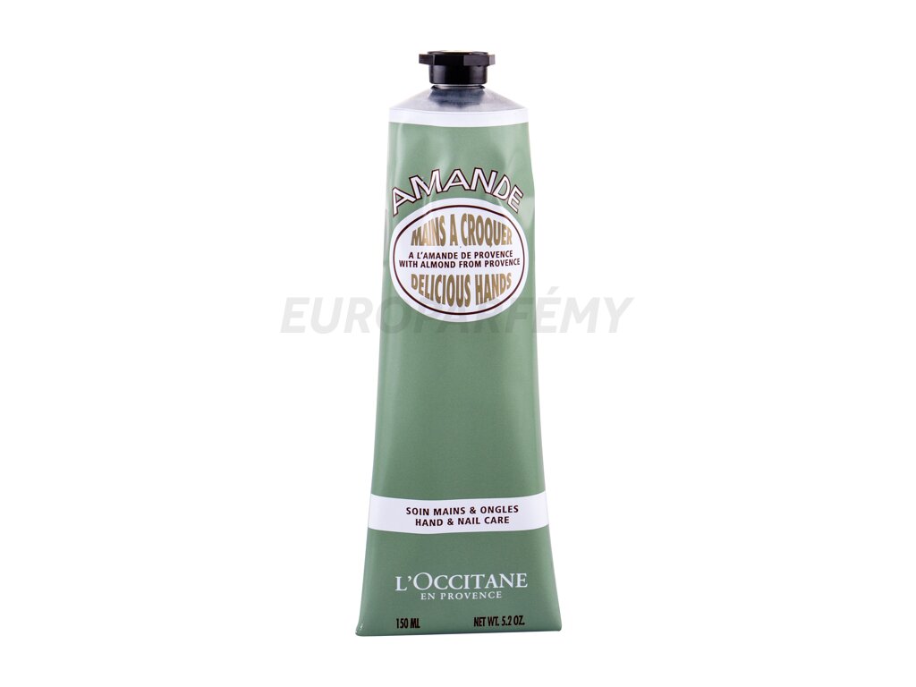 Vyživující krém na ruce L'Occitane Almond (Amande) Delicious Hands s mandlovým mlékem a olejem ze sladkých mandlí zvláčňuje pokožku a zanechává ji chráněnou.