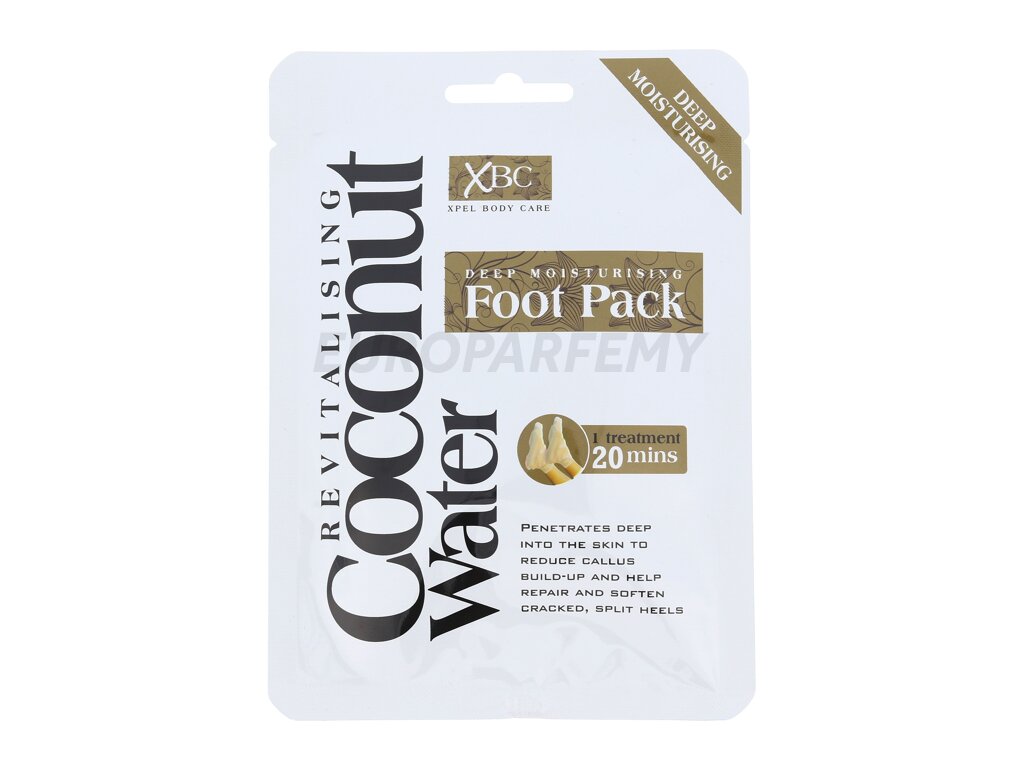 Péče Xpel Coconut Water Deep Moisturising Foot Pack s obsahem kokosového mléka hloubkově vyživuje pokožku chodidel. Poskytuje jim potřebnou vlhkost, zlepšuje a zjemňuje poškozené paty.