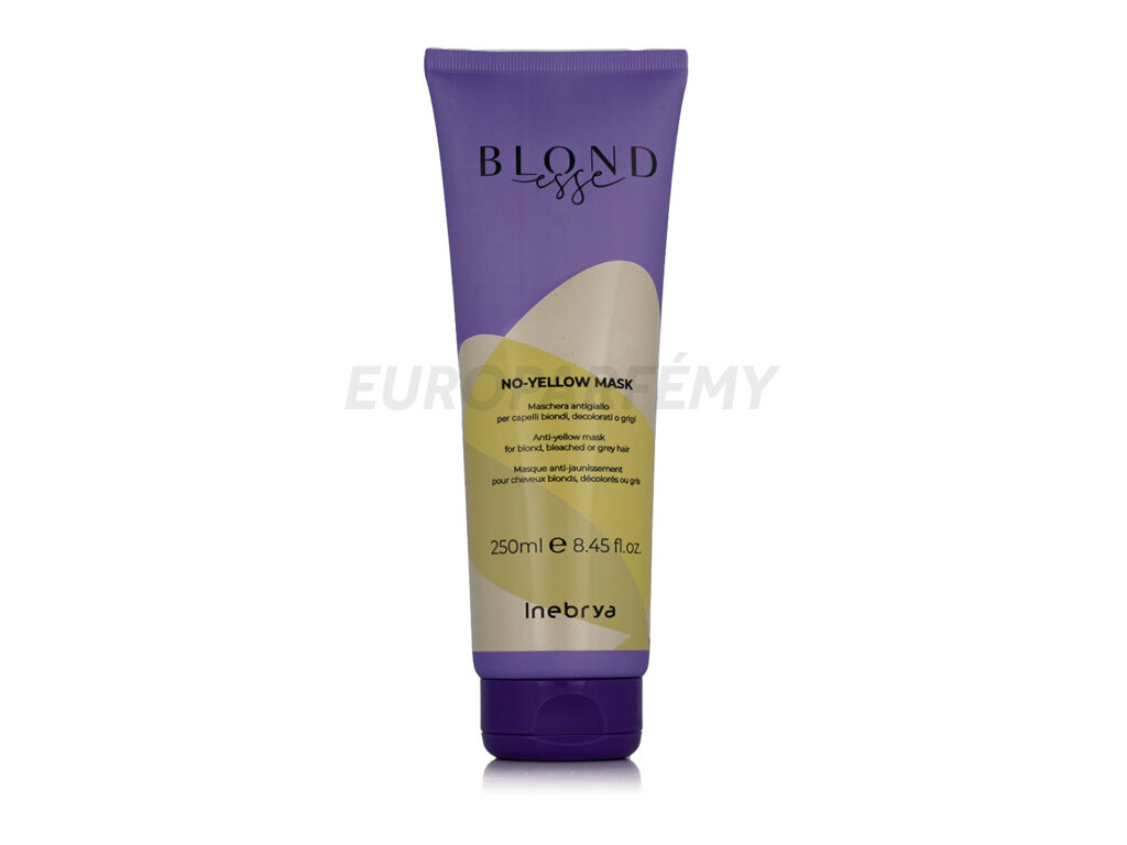 Inebrya BLONDesse No-Yellow Mask – anti-yellow maska 250 ml je intenzivní péče určená pro zesvětlené, odbarvené a šedivé vlasy, která efektivně neutralizuje nežádoucí žluté tóny. Díky obsahu hedvábných proteinů a výtažků z lisovaných hroznů vlasy zjemňuje, hydratuje a obnovuje jejich přirozený lesk. Maska zlepšuje strukturu vlasů, dodává jim pružnost a chrání je před vysušováním. Vlastnosti Neutralizuje nežádoucí žluté odstíny u zesvětlených a šedivých vlasůObsahuje hedvábné proteiny pro výživu a posílení vlasůVýtažky z lisovaných hroznů dodávají lesk a chrání vlasyIntenzivně hydratuje a zjemňuje vlasyVhodná pro pravidelné použitíKlíčové benefity Zajišťuje dlouhotrvající studený tón vlasůZanechává vlasy hebké, lesklé a snadno upravitelnéChrání vlasy před vysušováním a poškozenímObnovuje přirozený lesk šedivých vlasůIdeální pro udržení zářivého, studeného tónu vlasůPoužití Naneste masku rovnoměrně na vlhké, šamponem umyté vlasyNechte působit několik minut podle potřeby, pro intenzivnější efekt prodlužte dobu působeníDůkladně opláchněte teplou vodouPoužívejte pravidelně pro udržení studeného tónu vlasůTato maska je perfektní volbou pro intenzivní péči o odbarvené a šedivé vlasy, kterým dodá zářivý, studený odstín a zanechá je hebké a lesklé.