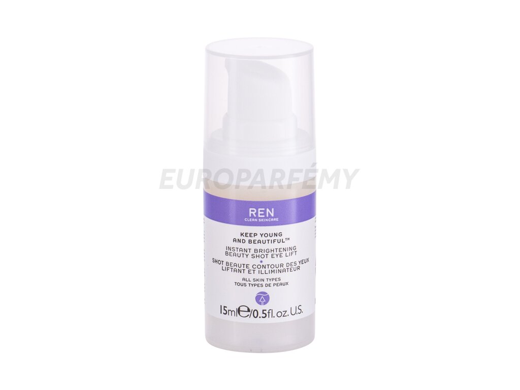 Toužíte po okamžitém rozjasnění, zvlhčení a viditelném pozvednutí jemné pleti okolo očí? Vsaďte na novodobý britský přípravek REN Clean Skincare Keep Young And Beautiful Instant Brightening Beauty Shot Eye Lift. Hodí se pro všechny typy pokožky. Při pravidelném používání výrazně omezí jemné linky a vějířky vrásek okolo očí.