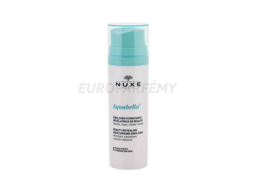 Emulze je určena pro mladou problematickou pleť. Je obohacena o výtažky z leknínu a komplex Natural Blur Complex (výtažky z ovsa, čočky a lichořeřišnice), které pleť hydratují a zároveň zmatňují lesknoucí se plochy. Emulze má svěží květinovou vůni. Se zkrášlující emulzí NUXE Aquabella Beauty-Revealing Moisturizing Emulsion bude vaše pleť svěží a krásná.