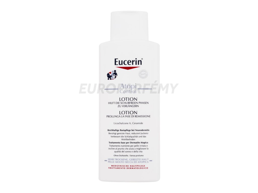 Suchá, atopická pokožka se neobejde bez každodenní kosmetické péče. Bohaté, vyživující tělové mléko Eucerin AtopiControl Body Lotion vám umožní mít stav pod kontrolou a prodlouží intervaly mezi nepříjemnými kožními projevy. Vyzkoušejte i vy tento výjimečný produkt pro zklidnění a intenzivní hydrataci podrážděné a svědivé pokožky. Klinické studie prokázaly jeho velmi dobrou účinnost a kožní snášenlivost na postižené pokožce. Zjistilo se také, že podporuje spánek a celkově zlepšuje kvalitu života pacientů s atopickou dermatitidou.