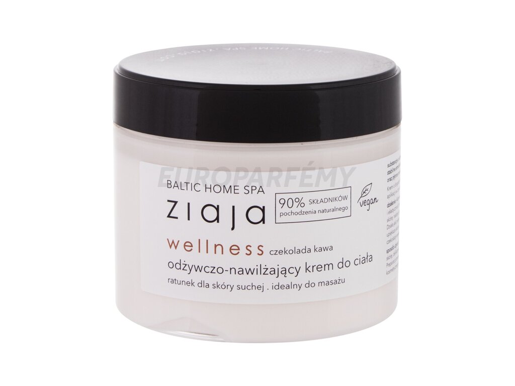 Hydratační tělový krém Ziaja Baltic Home Spa Wellness Body Cream Chocolate s bohatou texturou a až 90 % složek přírodního původu dodá suché pokožce vašeho těla přesně to, co potřebuje. Krém pokožku aktivně hydratuje, zlepšuje její pevnost a pružnost. Okouzlující vůně kávy a hořké čokolády pokožku navíc nádherně provoní.