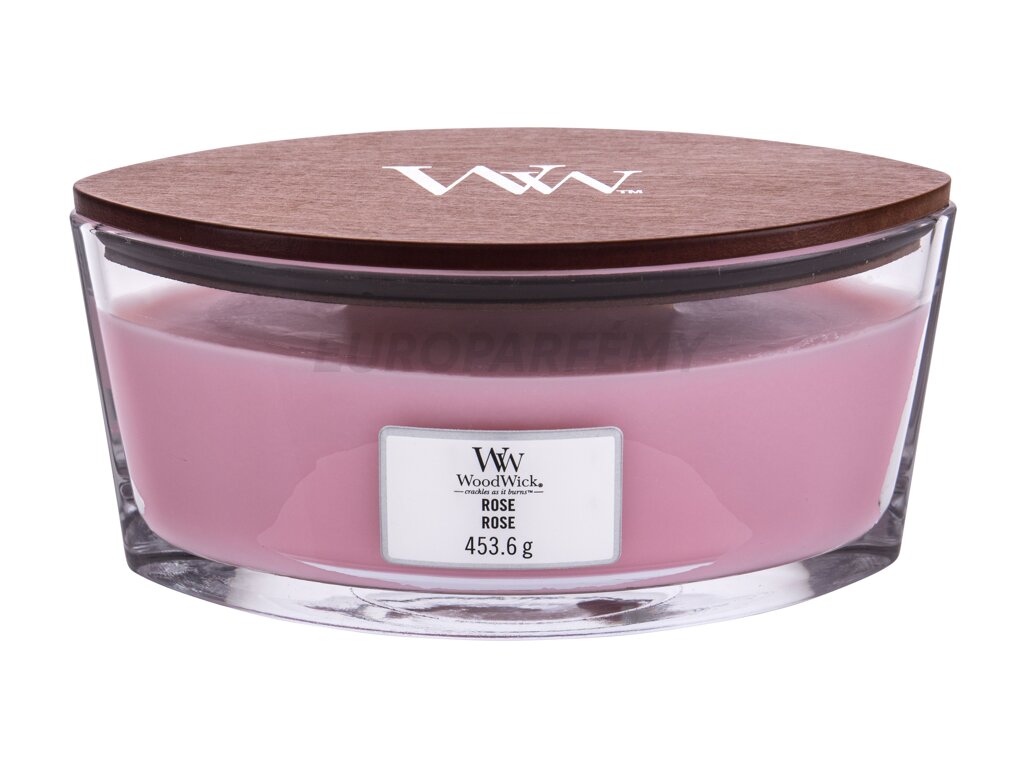Vonná svíčka WoodWick Rose je vyrobená ze směsi prémiového parafínu a sójového vosku s vysoce koncentrovanými vůněmi. Inovativní přírodní dřevěný knot Pluswick® Innovation vytváří uklidňující zvuk praskajícího ohně.