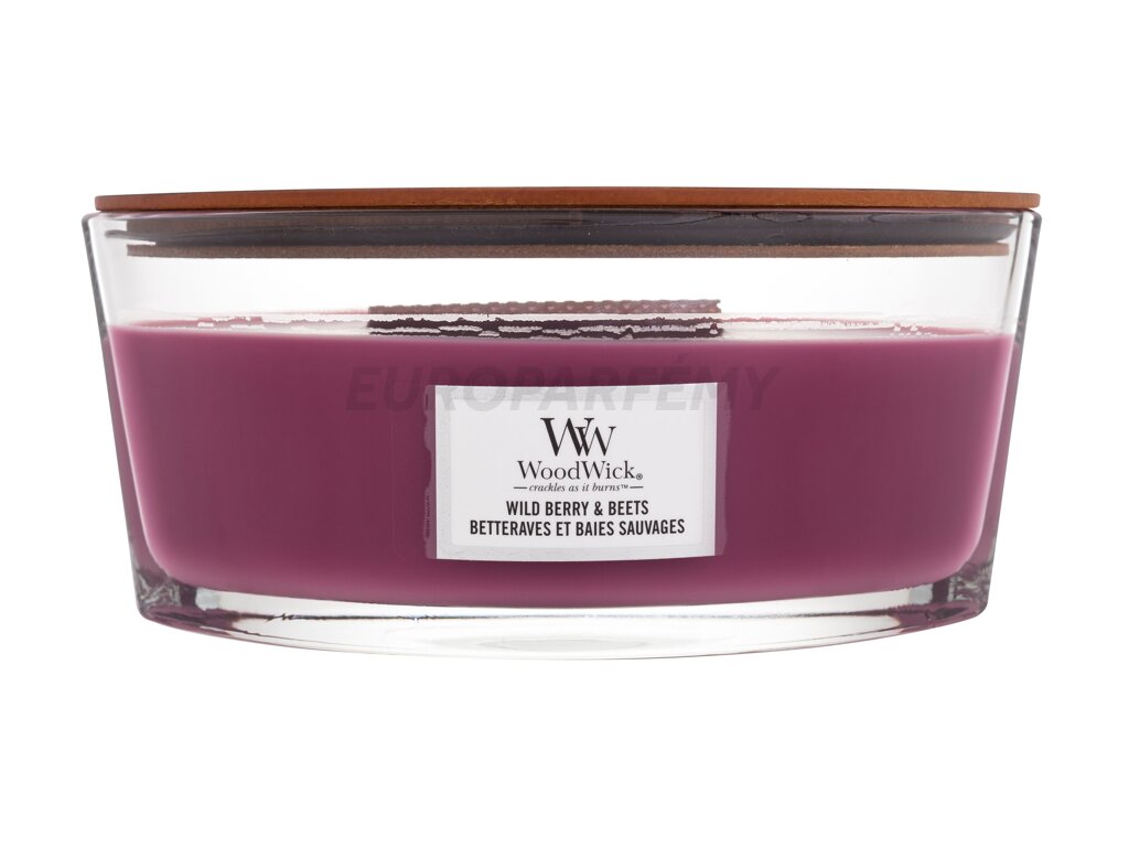 onná svíčka WoodWick Trilogy Wild Berry & Beets je vyrobená ze směsi prémiového parafínu a sójového vosku s vysoce koncentrovanými vůněmi. Inovativní přírodní dřevěný knot Pluswick® Innovation vytváří uklidňující zvuk praskajícího ohně.